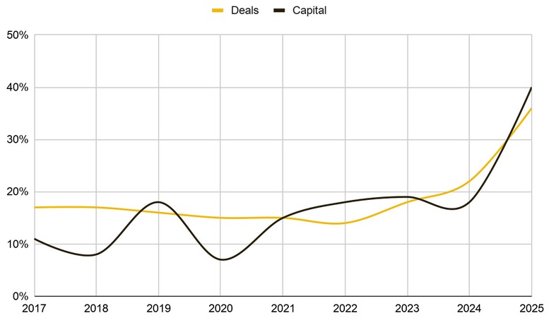 Rajah 3: Bagi setiap dolar VC yang dilaburkan dalam syarikat kripto pada tahun 2025, 40 sen pergi ke syarikat yang juga membina produk AI, menonjolkan betapa cepatnya AI diterapkan dalam peta jalan kripto