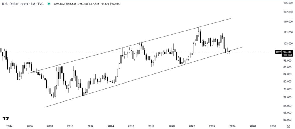 Ketika ini DXY dilihat telah breakdown dari ascending channel jangka panjang dan sedang menguji kawasan retest. Jika pengesahan gagal naik semula biasanya itu mengisyaratkan bias bearish USD , naratif yang menyebelahi aset berisiko termasuk crypto. Tapi jika DXY kembali membuat kenaikan memanjat atas garisan pecahan, crypto boleh kena hentam semula…ulasan penuh di https://t.me/cryptoblock_edu/10174